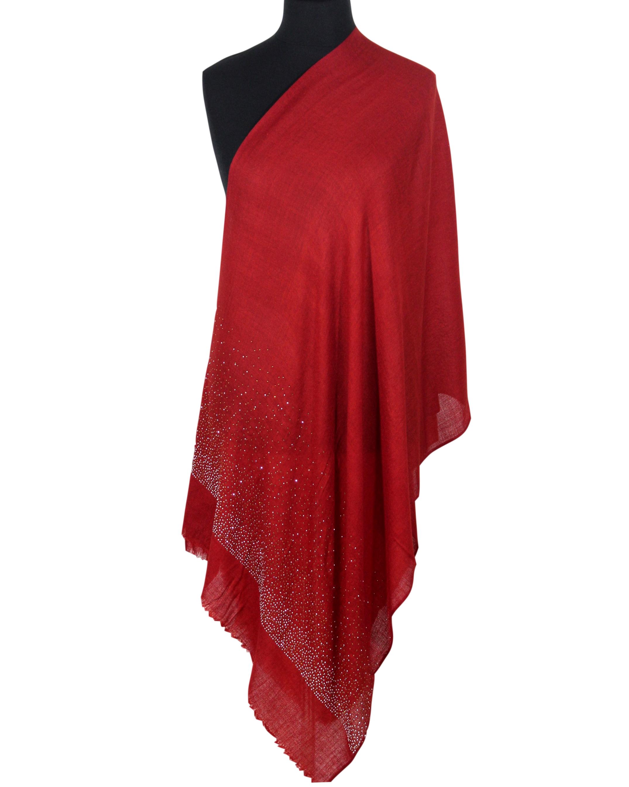 Set aside your own statement of style and gear up in this lovely and stunning Red swarovski pashmina. It discovers its beauty in its very concept colour scheme more especially in the brilliantly Swarovski patterns that embellish the entire field. The background colour and the colours of the design motifs have been amicably matched. The scarf is rare in ethnicity and indigenous flavour.