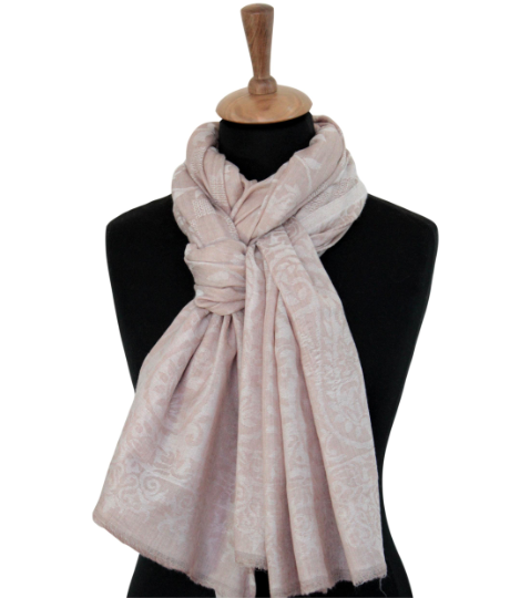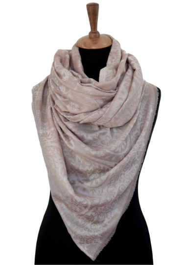 A symbol of luxury and elegance, Pashmina has always been the love and desire of women all around the world. To own a Pashmina is to experience royalty. This beautiful Natural Tan brown pashmina scarf has been crafted in the loose Basket weave self embellished pattern that adds to its charm.This heirloom exquisite Pashmina scarf is an ultimate piece of art that is unique and created with love, devotion and dedication.