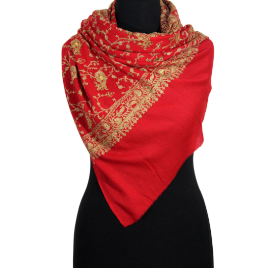 Fabled Red handmade ultra-fine cashmere pashmina chain stitch embroidered bridesmaid scarf/wrap/bridesmaid gift/Gift for wedding/Party Favor