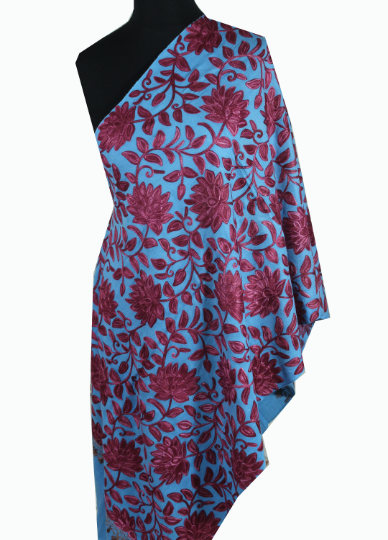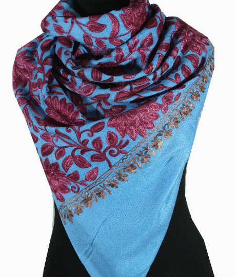 Elegant bleu de france Handwoven Cashmere Pashmina chain stitch embroidery scarf/Infinity scarf/vintage scarf/evening scarf/wedding gift