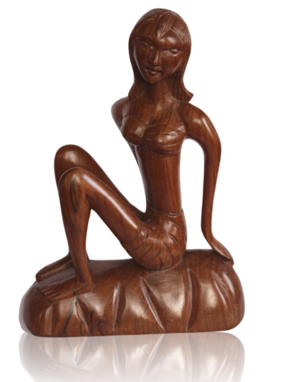 The master wood carver has captured the force of the lover's passion in a suar wood image.