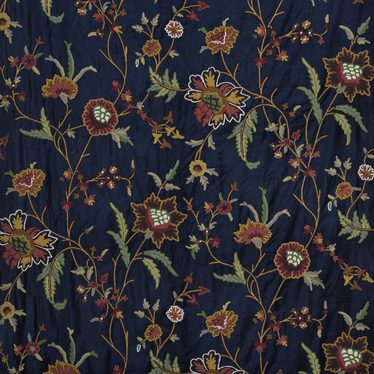 Beautiful Navy Blue Velvet Hand-Embroidery FULLY-LINED Crewel Curtain