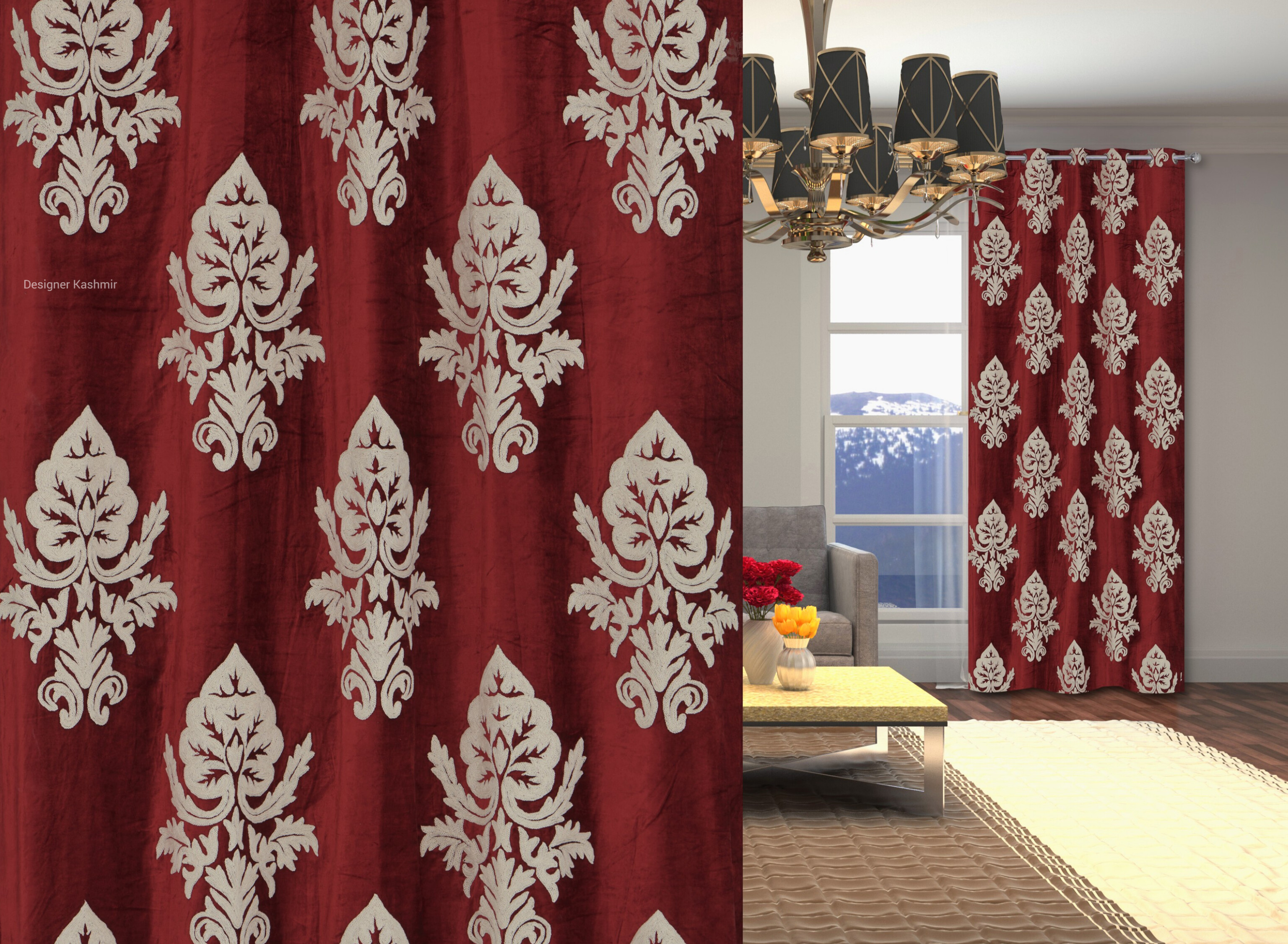 The wide range of Kashmir Crewel Curtains consisting of bedsheets(Throw) to pillow covers, curtains, etc.