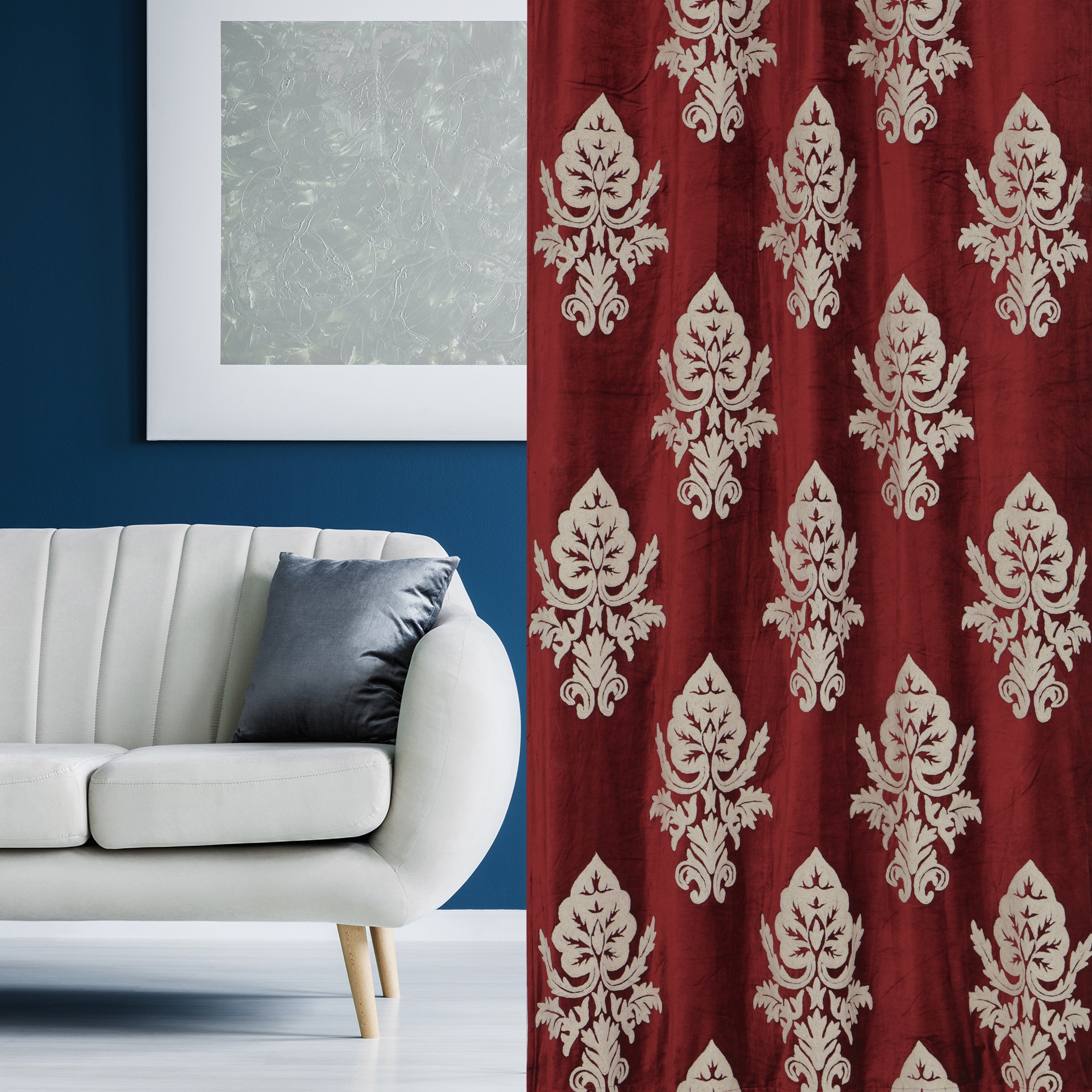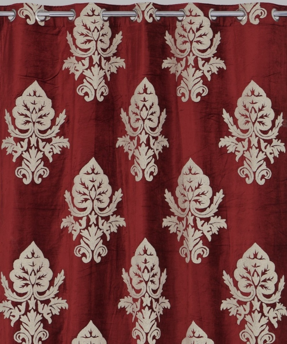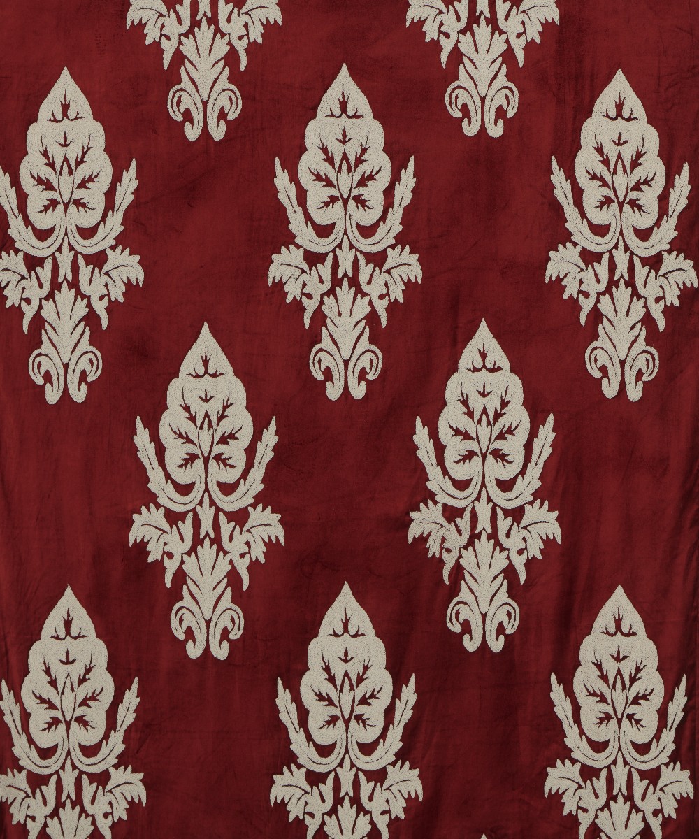 Luxurious Red Hand-Made FULLY-LINED Velvet Crewel Curtain