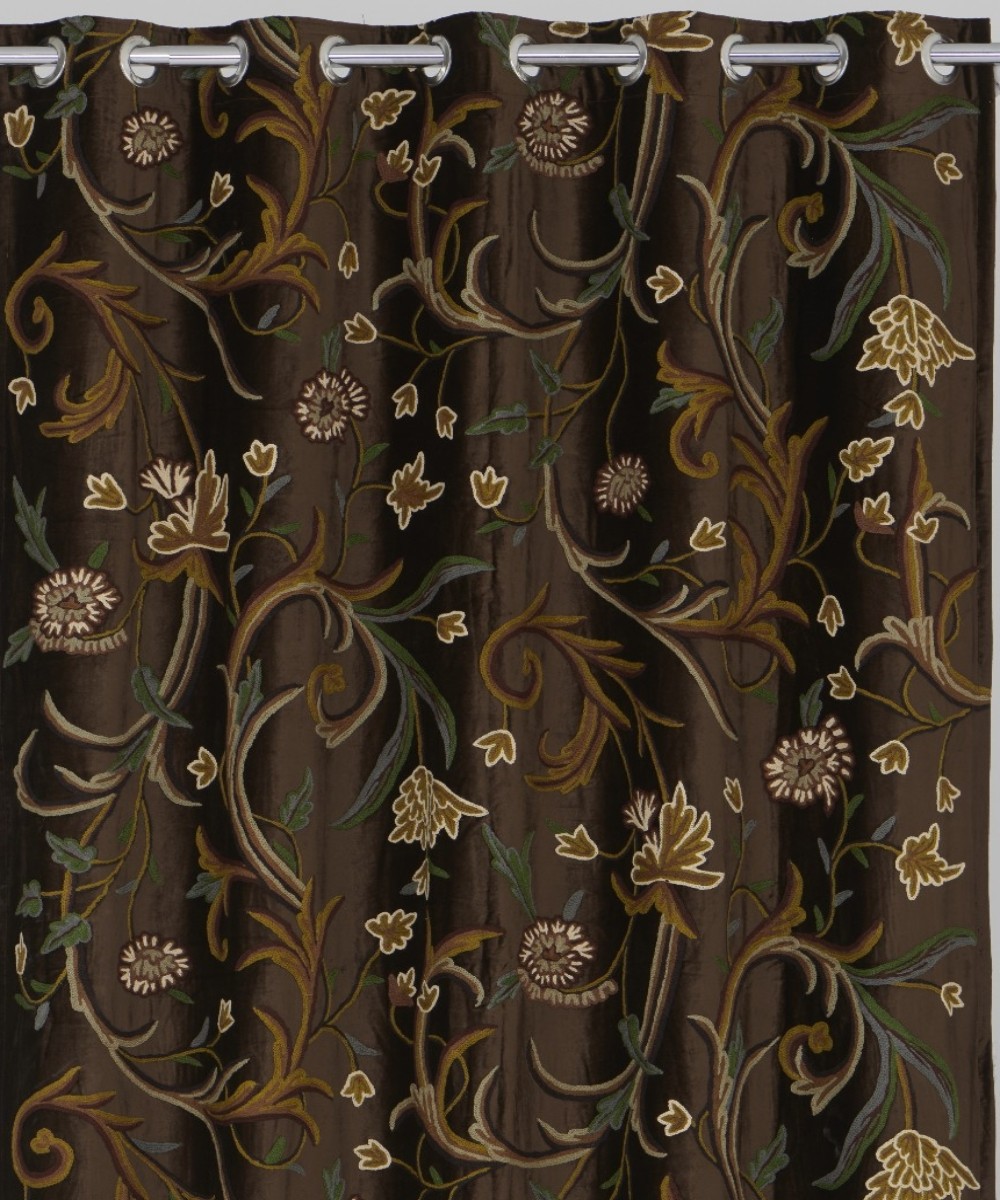 Beautiful Brown Velvet Hand-Embroidery FULLY-LINED Crewel Curtain