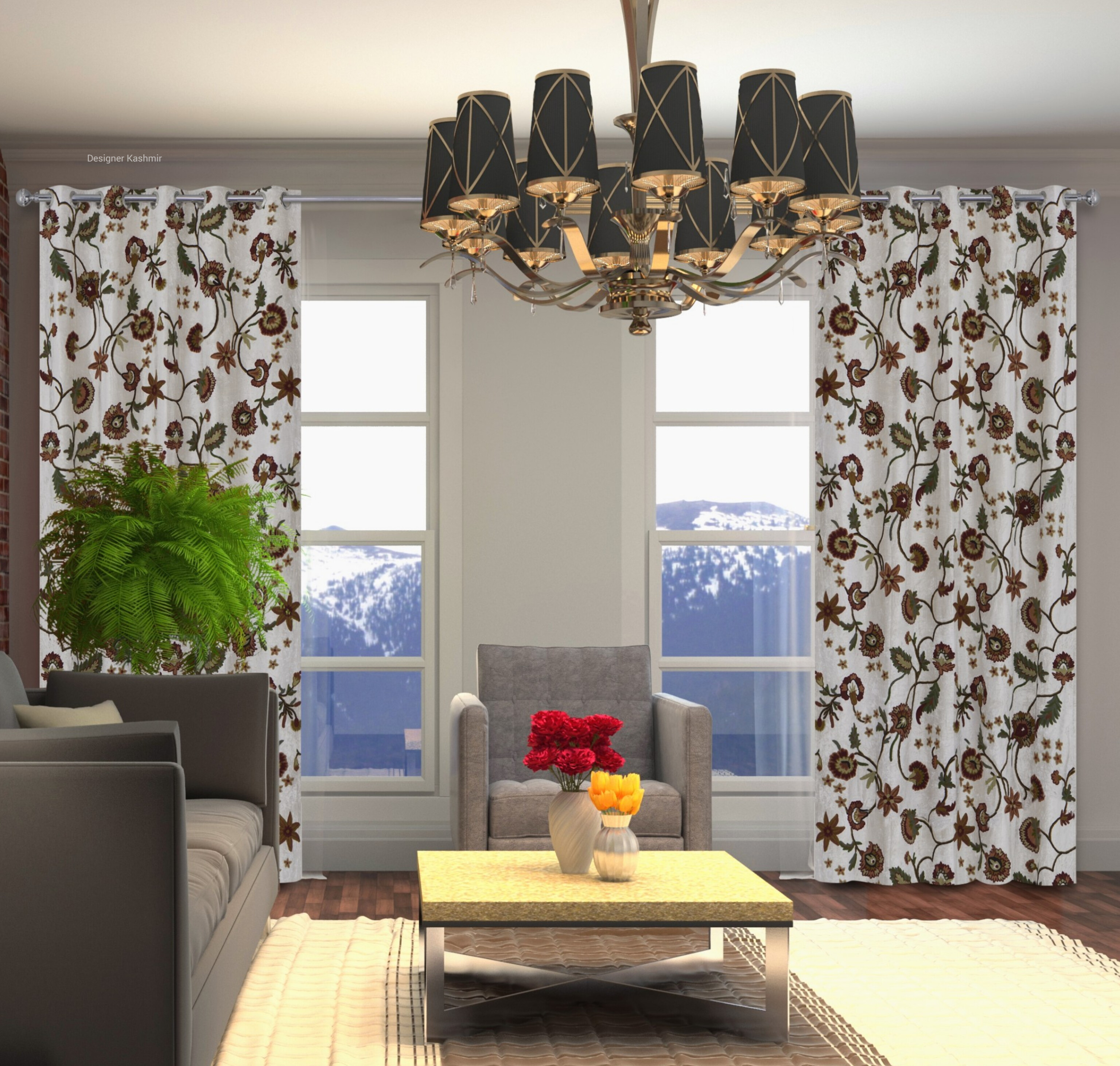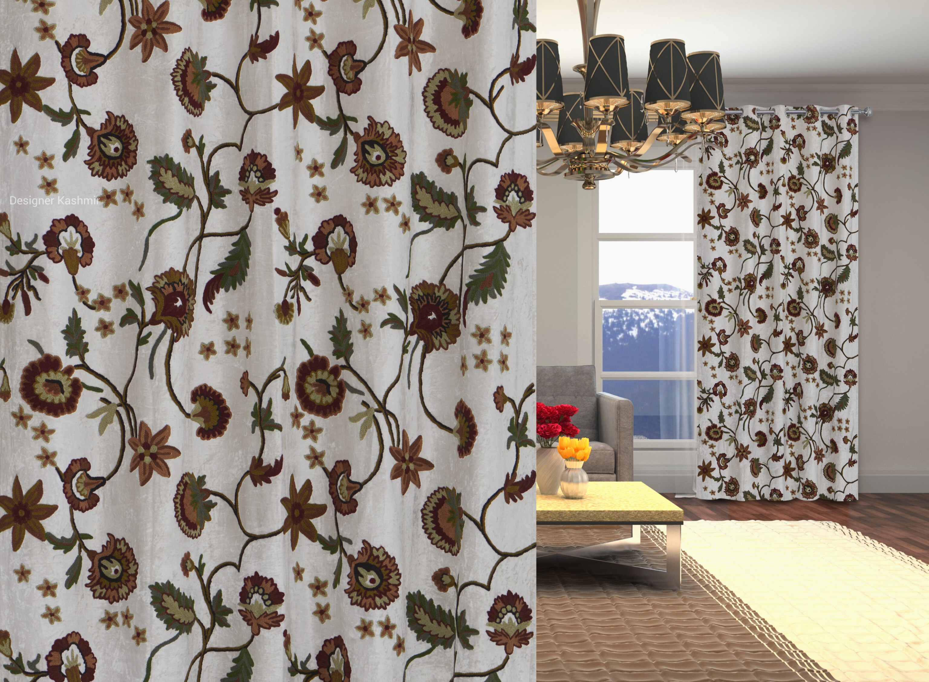 The wide range of Kashmir Crewel Curtains consisting of bedsheets(Throw) to pillow covers, curtains, etc.