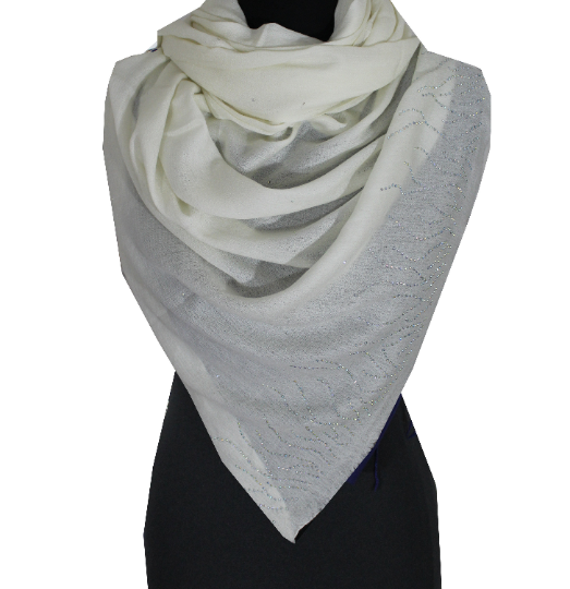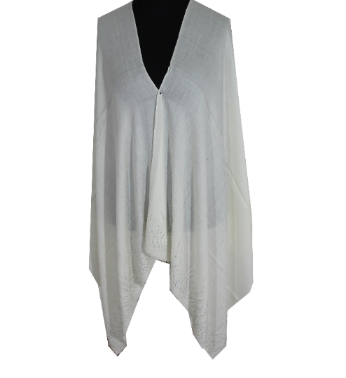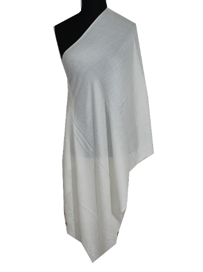 This beautiful Swarovski pashmina lace scarf is soft against the skin and will keep you at ease. The scarf exudes luxury and style with beautiful frayed ends. Only the softest and apical quality Cashmere pashmina untangled from high altitude Changra goats of Ladakh has been used to weave this most stylish Cashmere wrap. This beautiful pashmina is amazingly versatile and can be dressed in a number of ways adorned gently on one shoulder or worn loosely for more comfort. Its soft touch and dazzling looks make it an essential pick, waiting to get a place in your fashionable wardrobe. Drape it elegantly with matching Jewels to cater the spell of sheer elegance as desired.
