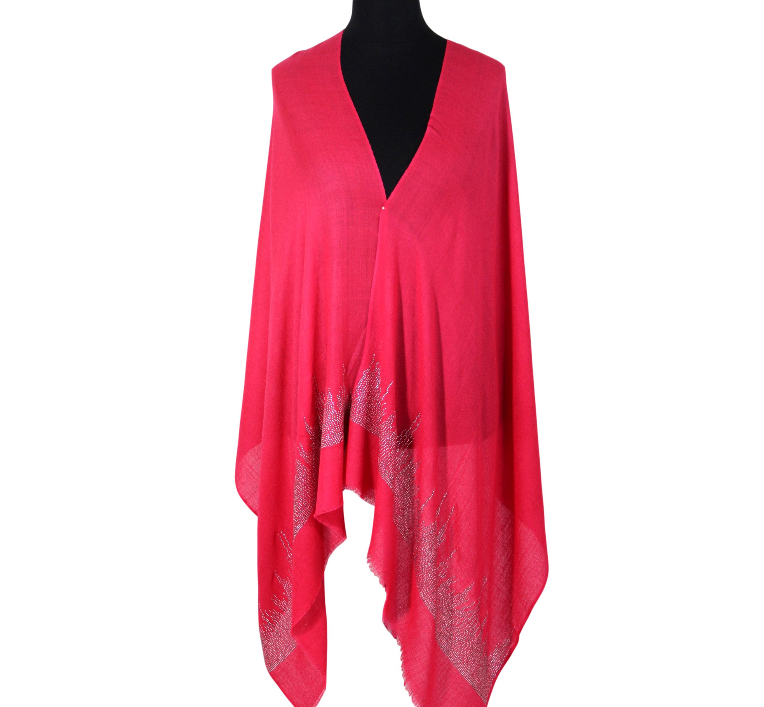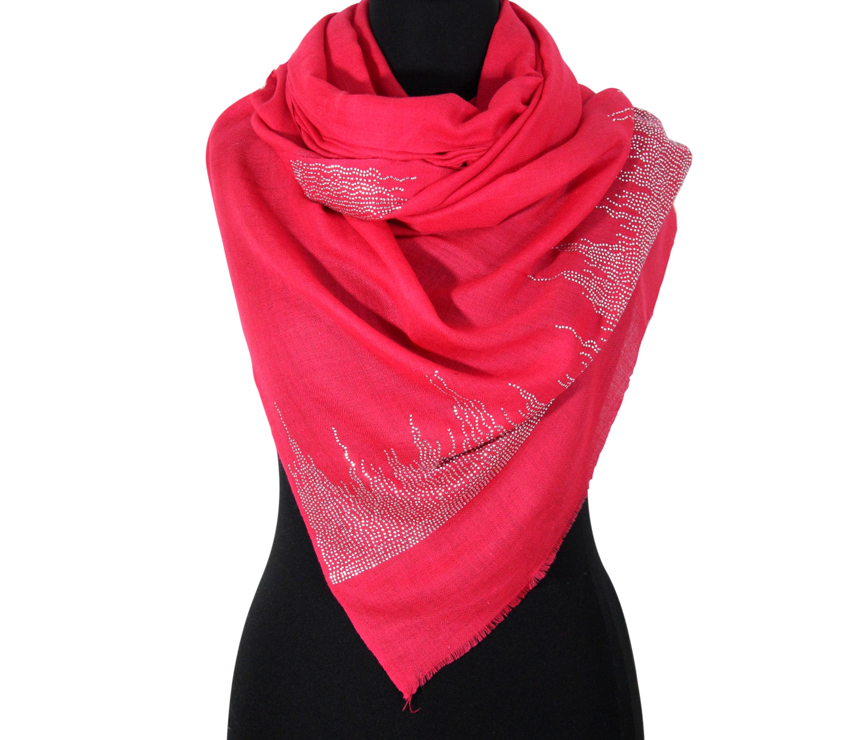Energized by the flamboyance of the stylish woman, who loves to streak her appeal in the way she ensemble up in the colours, the artist cast to design a scarf with sheer skill and grace. This scarf is going to be a great plus in your wardrobe and your accessories collection. It discovers its beauty in its very concept colour scheme more especially in the brilliant Swarovski patterns that embellish the entire field. Cast a spell with its sumptuous embrace, and let it give you a snuggly feeling in the midst of wherever you are. Gorgeously soft to touch, the beautiful Swarovski pattern gives it the timeless sheen for which it is loved and cherished by the elegant ladies all over the world. This beautiful wrap is soft against the skin and will keep you at ease. The wrap adds an element of vibrancy to your persona wearing, Go on, walk proudly as this extravagant piece of craft covers you in class.