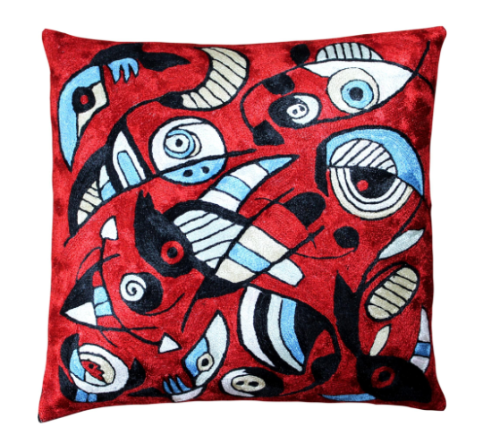 Designer Kashmir is delighted to fetch the contemporary abstract folk artwork, redolent of the work of significant artist Karla Gerard. This modern decorative pillow cover has bracing elements embellished in the dazzling multihued background. On viewing closely this intangible toss pillow cover allows you to perceive the incredible chain-stitch needlework of Kashmiri artisans that have practised this skill their whole life. Twisted of flexible Kashmir yarn over cotton fibre, this wholesome toss makes a lasting notion. Our Modern Pillow Covers are greatly demanded and acknowledge for squashy consistency and fine chain stitch artwork. Let these pillow covers endeavour to illustrate brightness and liveliness to your cosy home and prevail your visitor's impressions. This is a world-class workmanship created to augment your world with energetic shade and pattern. The astonishing shade and design of this contemporary toss pillow are just what the fashioner regimented to make a blistering focal point in your decor. Impeccable where you require a dash of shade, this artwork toss pillow design is as resilient as it is attractive. Our eye-catching pillow covers will give a new voice about your distinct tastes in home decor and will augment every room and any grace thinkable to you. The Pillow cover comes with a zipper to confirm ease of use.