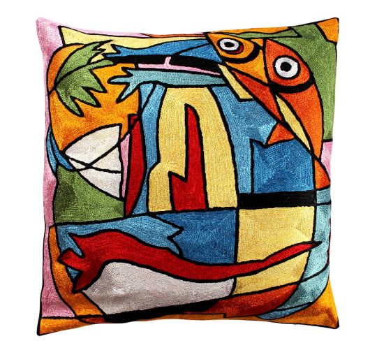 Designer Kashmir is delighted to fetch the contemporary abstract artwork, redolent of the work of significant Russian artist, Wassily Kandinsky. These contemporary toss pillow covers are handcrafted by Kashmiri artisans and are of the most excellent chain-stitch needlework in the sphere. Twisted of flexible Kashmir yarn over cotton fibre, this wholesome toss makes a lasting notion. On viewing closely this intangible toss pillow cover allows you to perceive the incredible chain-stitch needlework of Kashmiri artisans that have practised this skill their whole life. .Our Kandinsky Pillow Covers are greatly demanded and acknowledge for squashy consistency and fine chain stitch artwork. Let these pillow covers endeavour to illustrate brightness and liveliness to your cosy home and prevail your visitor's impressions. This is a world-class workmanship created to augment your world with energetic shade and pattern. This intangible attractive pillow cover can refinement the chalet of your ferry in your sundial and nevertheless be uniformly as cosy in your lair. The astonishing shade and design of this contemporary toss pillow are just what the designer regimented to make a blistering focal point in your decor. Impeccable where you require a dash of shade, this artwork toss pillow design is as resilient as it is attractive. This pillow cover can glimmer up an older toss pillow or etiquette a new-fangled pillow appearance. The Pillow cover comes with a zipper to confirm ease of use.