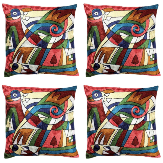 Designer Kashmir is delighted to fetch the contemporary abstract artwork pillow collection motivated by the realm of prominent artist Alfred Gockel. The unified cotton foul of the pillow is superimposed with comfy yarn, snitch by snitch, conceive a phenomenal work of art for your adornment. On viewing closely you will find that this abstractly designed pillow cover allows you to grasp the astonishing chain-stitch embroidery work of master craftsperson who has accomplished this art for their entire lives. This is a magnificent artistry initiate to amplify your world with energetic hues and motif. These exclusive, flawless and contemporary pillow covers would bring the cheer to the features of any room, crafting a symphonic design and flawless appearance of intricacy. Spins of vivid chain stitch hand embroidery make a promise of euphoric touch and enhance an alluring lustre to the designs. Your peculiar elegance will be beautifully replicated when you take home these noticeable decorative toss pillow covers. Our stunning pillow covers will give a new voice about your discrete tastes in home decor and will augment every room and any grace thinkable to you. The Pillow cover comes with a zipper to confirm ease of use.