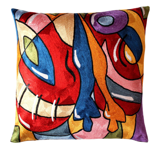 Kandinsky Abstract Composition Silk Throw pillow Cover Hand Embroidered Silk,Home Decor,High End Pillow,Decorative Cushions/Size 18-18.