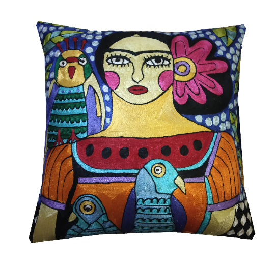 Add a splash of colour to your living room with our skilfully designed Modern Floral pillow covers. This modern decorative pillow cover has bracing floral elements embellished in the dazzling multihued background. On viewing closely this intangible toss pillow cover allows you to perceive the incredible chain-stitch needlework of Kashmiri artisans that have practised this skill their whole life. Twisted of flexible Kashmir yarn over cotton fibre, this wholesome toss makes a lasting notion. Our Modern Floral Pillow Covers are greatly demanded and acknowledge for squashy consistency and fine chain stitch artwork. Let these pillow covers endeavour to illustrate brightness and liveliness to your cosy home and prevail your visitor's impressions. This is a world-class workmanship created to augment your world with energetic shade and pattern. These exclusive, flawless and Modern pillow covers would fetch simultaneously the artistic segment of any room, creating a melodious design and wonderful appearance of sophistication. The astonishing shade and design of this contemporary toss pillow are just what the fashioner regimented to make a blistering focal point in your decor. Impeccable where you require a dash of shade, this artwork toss pillow design is as resilient as it is attractive. Our eye-catching pillow covers will give a new voice about your distinct tastes in home decor and will augment every room and any grace thinkable to you. The Pillow cover comes with a zipper to confirm ease of use.