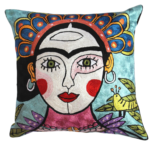 Pablo-Picasso-decorative-women-with-parrot-accent-pillow-cover-hand-embroidery-silk-Home Decor-Personalized gift-Modern Couch Pillow-18 x 18