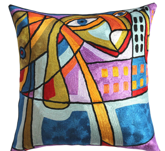 Kandinsky-modern accent-decorative pillow cover musical hand-embroidery Home Decor/High End Pillow/Modern Sofa Pillow/Silk18x18-FreeShipping