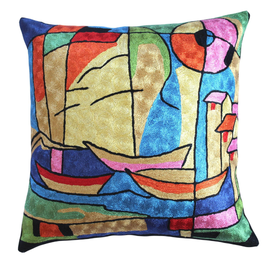 Kandinsky-modern accent-decorative pillow cover musical hand-embroidery Home Decor/High End Pillow/Modern Sofa Pillow/Silk18x18-FreeShipping