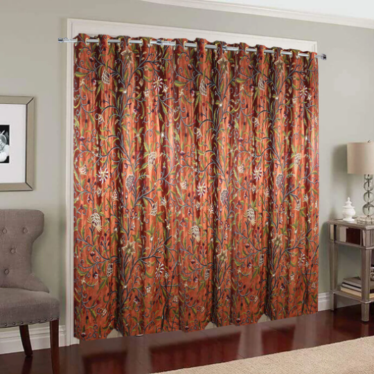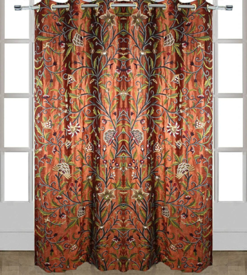 The wide range of Kashmir Crewel Curtains consisting of bedsheets (Throw) to pillow covers, curtains, etc.
