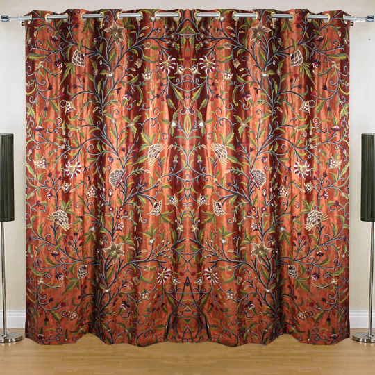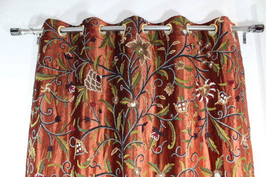 Beautiful Amber Rust Hand-Embroidery Velvet Crewel Curtain