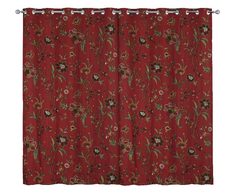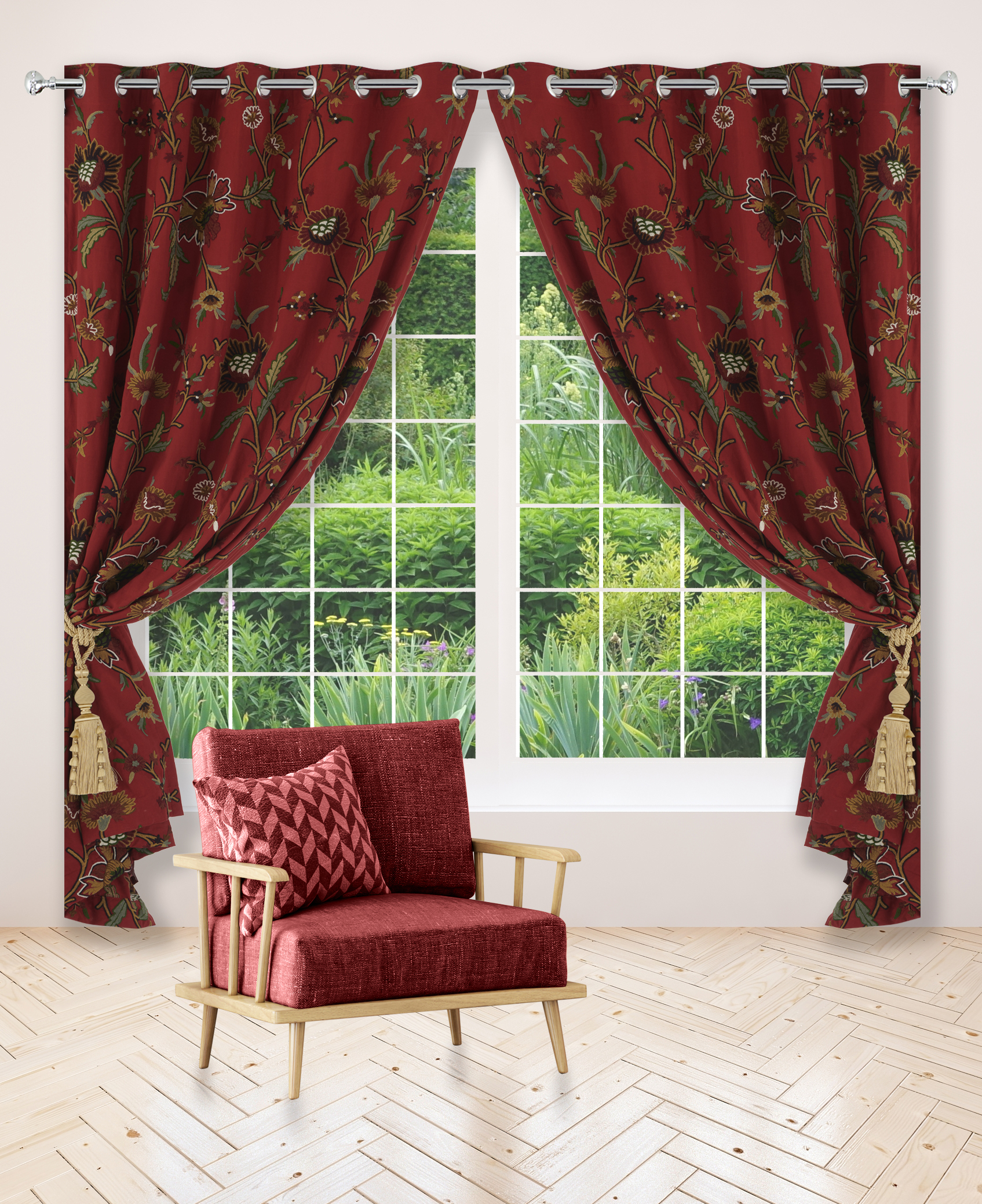 Premium Quality Lavish Red Hand-Made FULLY-LINED Cotton Crewel Curtain
