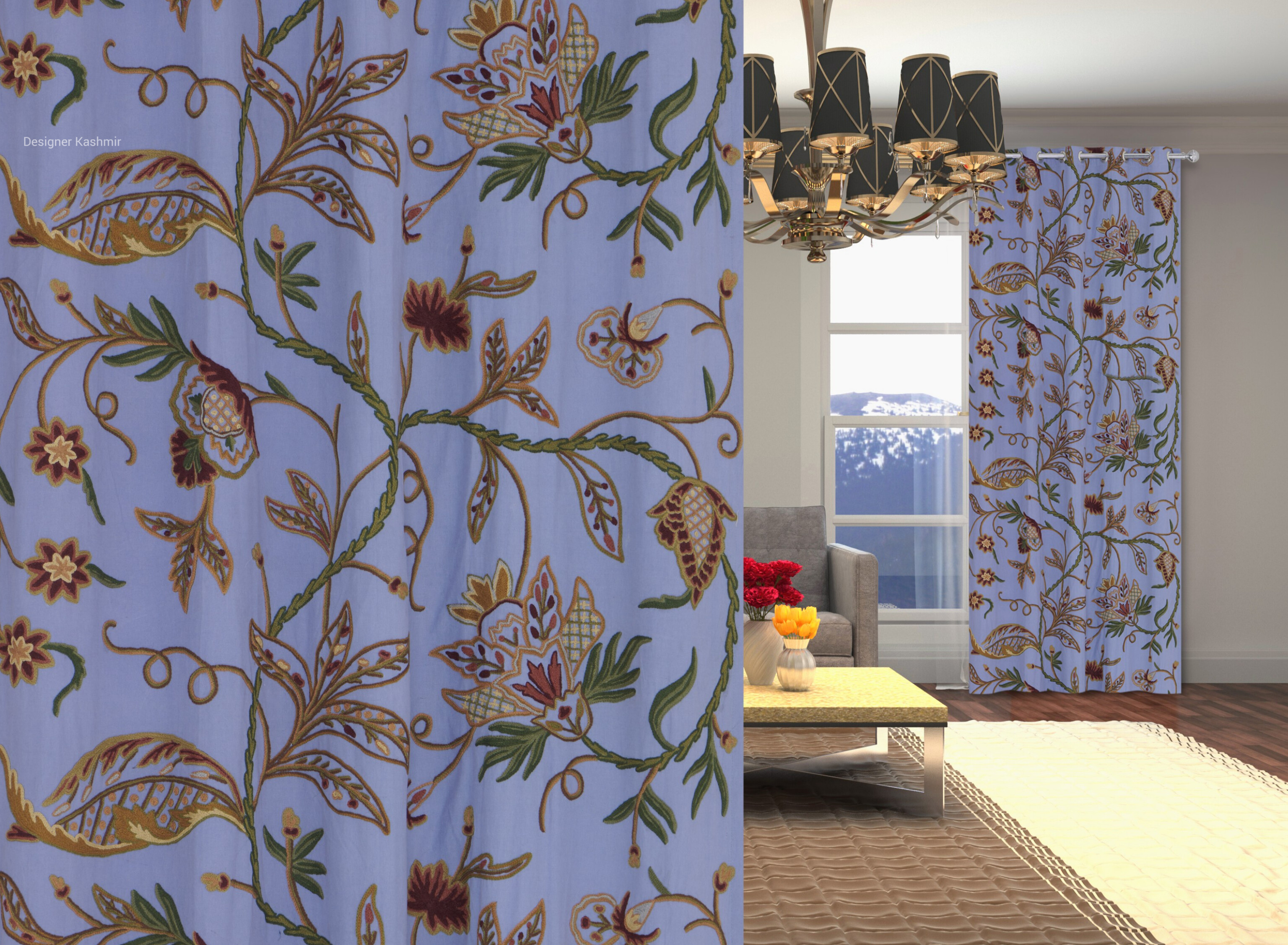 The wide range of Kashmir Crewel Curtains consisting of bedsheets(Throw) to pillow covers, curtains, etc.