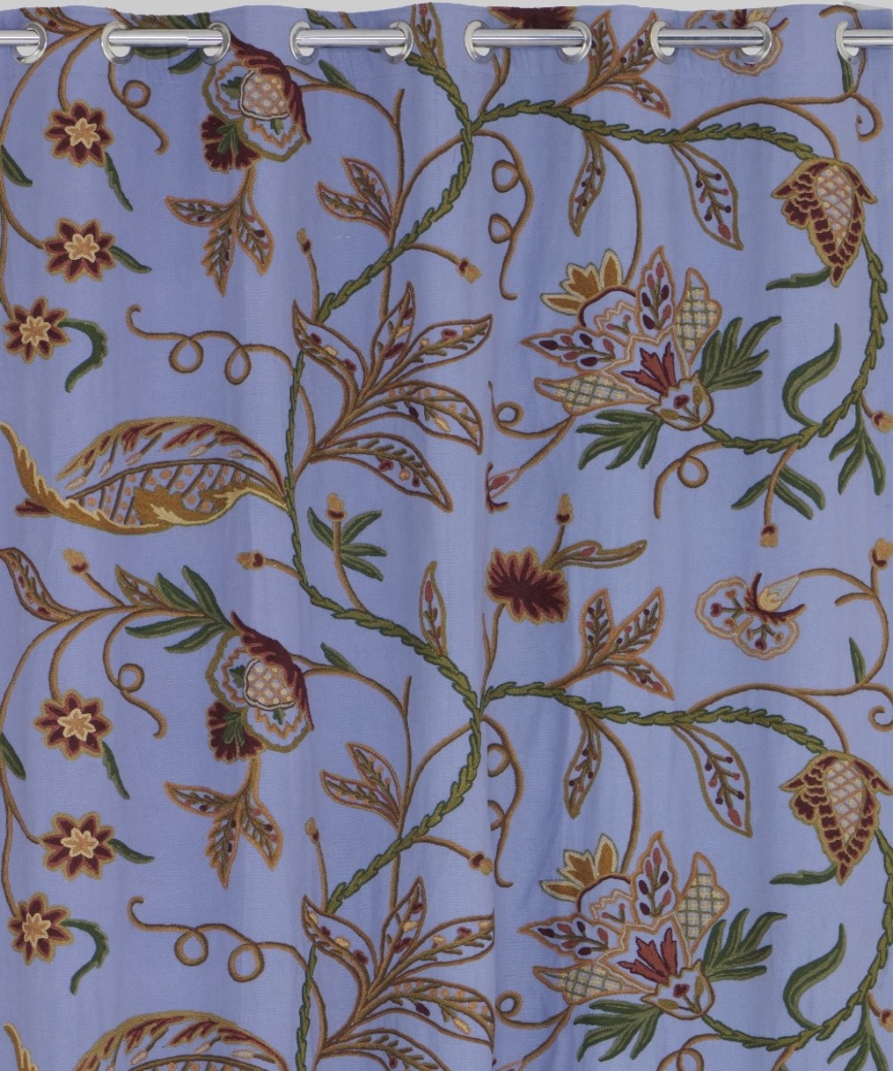 Elegant Lavish Blue Hand-Embroidery FULLY-LINED Crewel Curtain