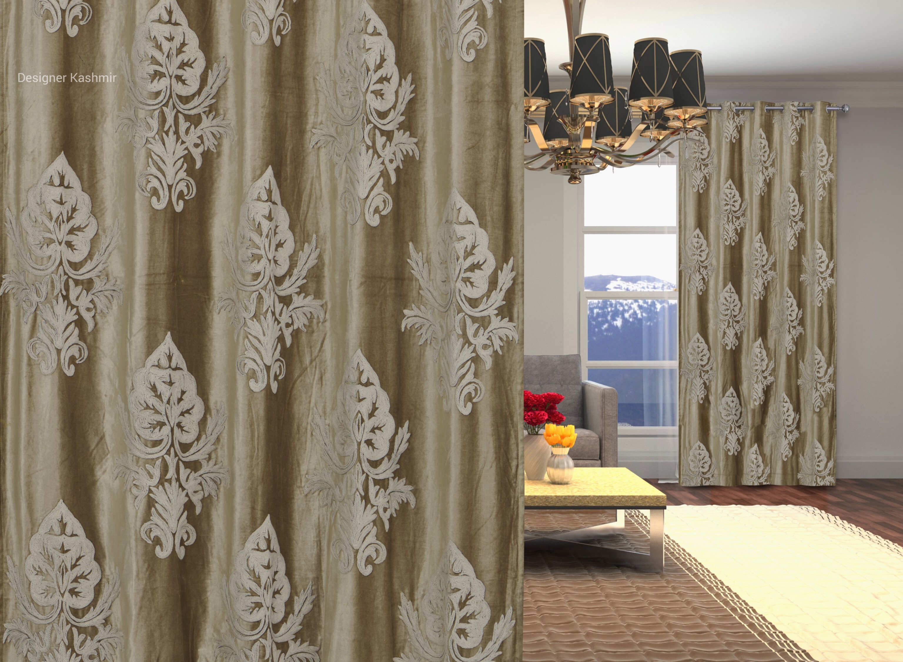 The wide range of Kashmir Crewel Curtains consisting of bedsheets(Throw) to pillow covers, curtains, etc.
